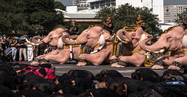 থাইল্যান্ডের প্রয়াত রানিকে শ্রদ্ধা জানাতে গোলাপি রঙের হাতি