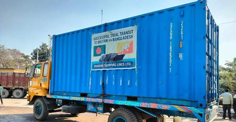 ভারতের ভূখণ্ড ব্যবহারের অনুমতি না পাওয়ায় বাংলাদেশের ওপর দিয়ে ভুটানে পণ্য পরিবহনের (ট্রানশিপমেন্ট) পরীক্ষামূলক কার্যক্রম শুরুতেই হোঁচট খেয়েছে। থাইল্যান্ড থেকে চট্টগ্রাম বন্দর হয়ে আসা ভুটানের প্রথম ট্রানশিপমেন্ট চালানের পণ্যবাহী একটি কনটেইনার লালমনিরহাটের বুড়িমারী স্থলবন্দরে আটকে আছে।